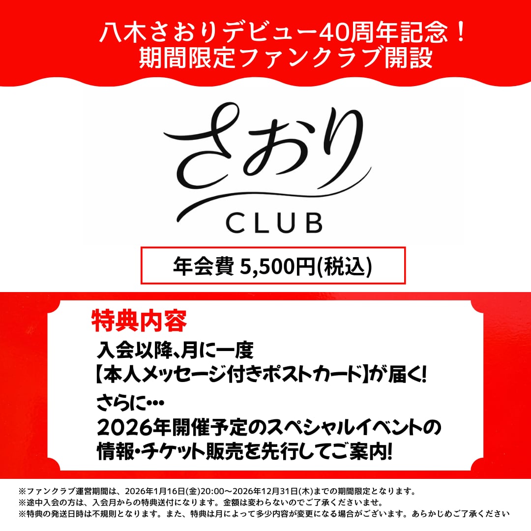 ファンクラブ運営期間:2026年1月16日(金)20:00〜2026年12月31日(木)まで